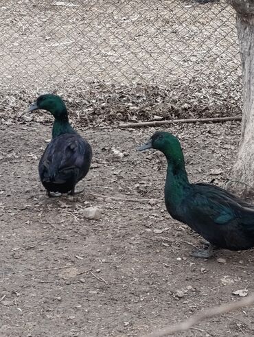 Məhsul: Ördeklər (qara-yaşıl parıltılı lələklər)bir cütü 70 azn Təsvir: - Rəng: Tünd yaşıl-qara, günəşdə metalik parıltı verir - Növ: Yerli su quşları; bataqlıq/su kənarı şəraitinə uyğun - Say: Şə...
