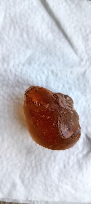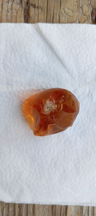 EndirimsizTəbii görünüşlü, yarışəffaf narıncı-kəhrəba rəngli mineral/daş parçası.