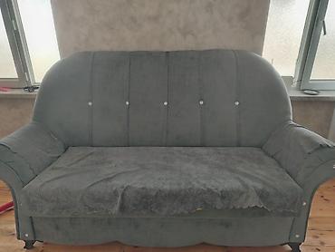 Məhsul: İşlənmiş 2 yumşaq kreslo 1açılan divan Təsvir: - Klassik dizaynlı, geniş oturacaqlı və yüksək bel hissəli rahat kreslo - Dərin mavi/boz tonlarda məxmər tipli parça üzlük - Qabarlı (segment...