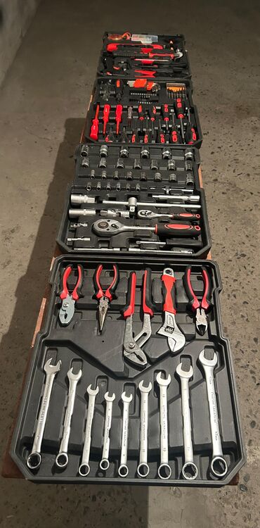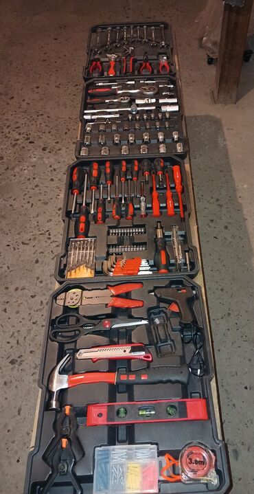 Peşəkar və ev istifadəsi üçün çoxçeşidli alət dəsti Her mehsulun oz qiymeti var kime hansi maraqlidir buyursun Məhsul tərkibi: - Açar dəstləri: müxtəlif ölçülərdə klassik iki uclu açarlar (...