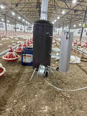 - İstehsalat və anbar tipli böyük sahələrin qızdırılması üçün nəzərdə tutulub; şəkillərdə broyler zalında istifadə nümunəsi göstərilib.