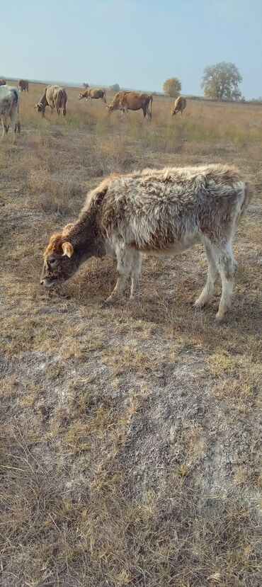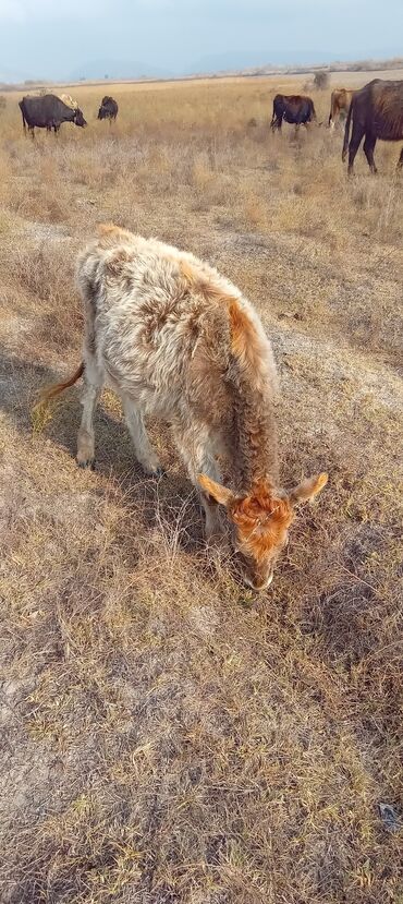 Satışda 2 baş buzov - Növ: Yerli mal-qara (erkək buzovlar) - Rənglər: biri ağ-krem rəngli, digəri qara (burun və qulaq hissələrində qəhvəyi tonlar) - Yaş qrupu: təxminən 6–9 aylıq - Qidalanma: otl...