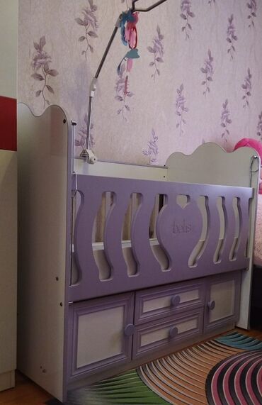 Uşaq beşiyi – ağ rəngli, sürüşən barmaqlıqla Qurulmuş vəziyyətdədir; şəkillərdə real görünüşü verilmişdir.