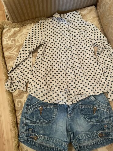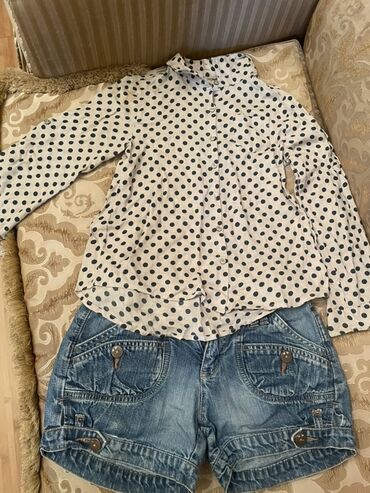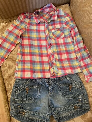 Gündəlik və məktəb tərzində uyğun kombinlər üçün əlverişli, yay və yaz mövsümü üçün rahat variant. Dəstdə bir cüt denim şort və iki müxtəlif naxışda köynək var.
