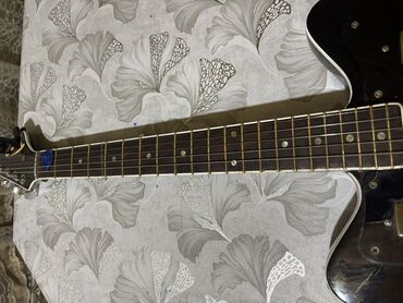 - Pickguard: geniş, qara, dekorativ naxışlı hissə və metal elementlərlə