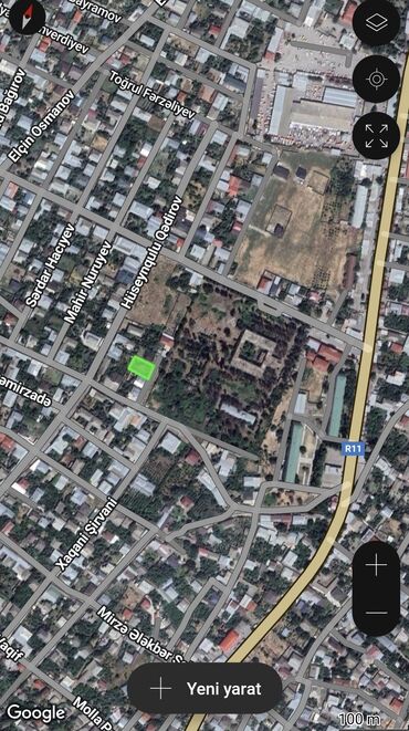 - Sahə: geniş, düzbucaqlı planlı boş torpaq. Həyətyanı konstruksiyalar yoxdur, planlama və tikinti üçün rahatdır.