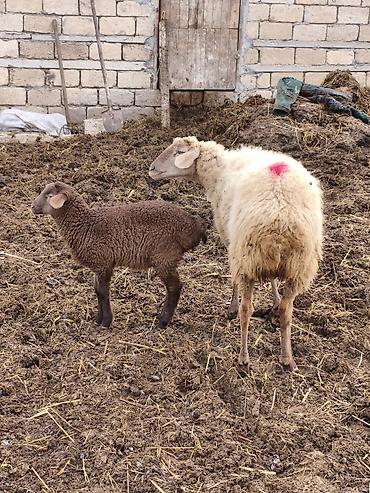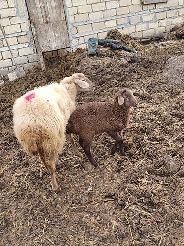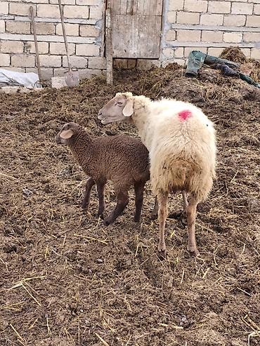 Qoyun ana bala ilə - Növ: Yerli cins quzu ilə ana qoyun - Ana: qulaqlarda birika/ear-tag, ağ-qəhvəyi rəngli yun, uzunqulaq, sakit təbiətli - Bala: tünd qəhvəyi yunlu quzu, sıx və bükülü tük örtüyü...