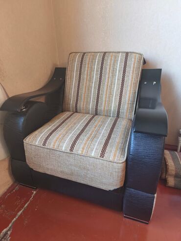 Zolaqlı dizayna malik divan və kreslo dəsti . Qonaq otağı üçün idealdır və komfortdur