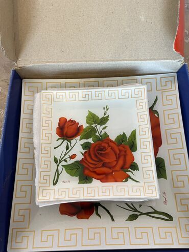 Tort,keks va ya meyva ucun - 6 eded tarelka va 1 boyuk boshqab. Unvan: Montin (Funda klinikasinin yani) va yaxud H. Aliyev Merkezinin ostanovkasi (catdirilma yoxdur)