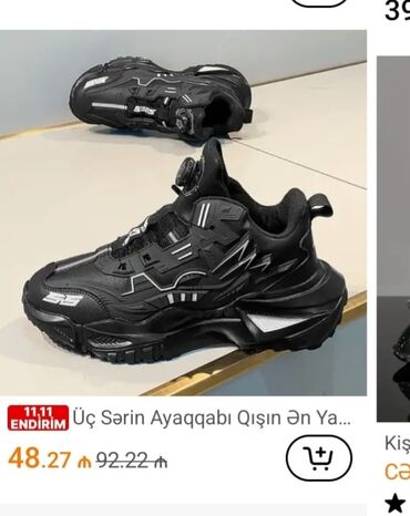 Model: Qara rəngli, qalın altlıqlı idman/keaşuel krossovka. Baha alınıb, razmer uyğun gəlmədiyinə görə dəyərindən çox ucuz 25 manata satılır.