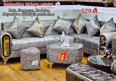 Künc divan – modern dizaynlı, boz rəngdə - Ölçü: 260 x 160 sm - Açılan, bazalı model – əlavə saxlama yeri - Qupka sıxlığı: 25-lik - Süngər hündürlüyü: 10 sm - Komplekt: 2 ədəd yastıq hədiyyə - Çatd...