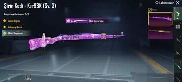 - Şirin Kedi – Kar98K (Səviyyə 3): Təmel biçim, Gelişmiş Surət və Ölüm Duyurusu aktivdir.