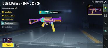 - 8 Bitlik Patlama – UMP45 (Səviyyə 3): Təmel biçim, Özel Eleme Efekti, Gelişmiş Surət və Ölüm Duyurusu aktivdir; son görünüş mərhələsi üçün yüksəltmə seçimi mövcuddur.