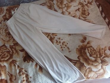 Bej rəngli rahat şalvar – ölçü M - Kəmər hissəsi: elastik rezin və ağ iplə bağlama - Qalıp: rahat/boş kəsim, düz balaq - Material: möhkəm toxumalı parça (təbii görünüşlü, nəfəsalan) - Ciblər: öndə...