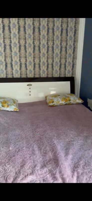 - İkinefərlik çarpayı başlıqlı. Başlıqda dekorativ elementlər və iki rəngli dizayn.