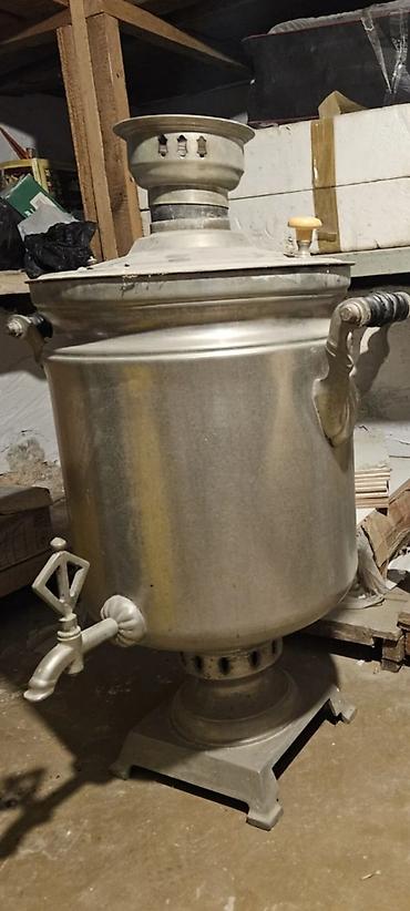 qədimi samovar əlla vəziyyətdə 40 litir - Yanacaq növü: kömür/odunla işləyən (üst hissədə baca çıxışı) - Geniş su qazanı – çoxsaylı fincan üçün uyğundur - Korpus: parlaq metal, istiliyi yaxşı saxl...