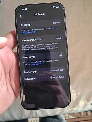 iPhone 16 Pro Max – 256 GB – Əla vəziyyətdə iPhone 16 Pro Max satılır. 📱 Yaddaş: 256 GB 🔋 Batareya: 100% (tam ideal) 📦 Qutusu var, karobkası üstündə ✨ Heç bir cızıq, nöqtə yoxdur – təzə kimidir 🌍 ...