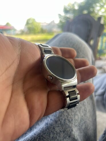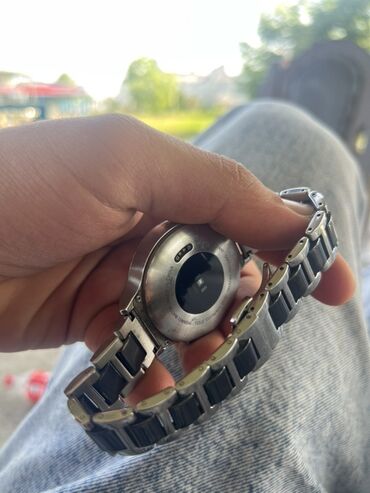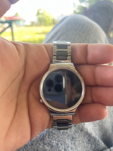 - Metal halqalı smart saat (dairəvi ekran, metal korpus və qolbaq).