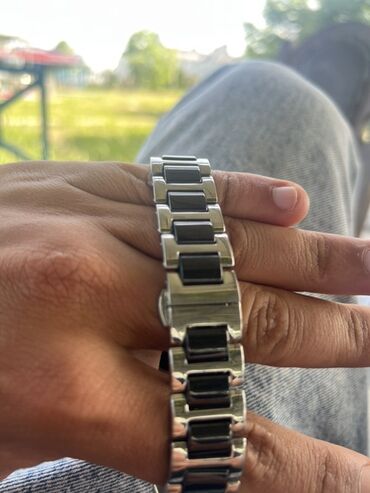 - Paslanmayan poladdan korpus, zərif metal/keramika elementli qolbaq (iki rəngli: gümüş və qara hissələr)