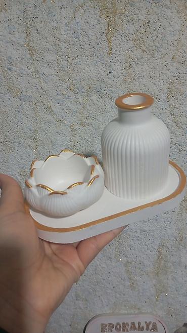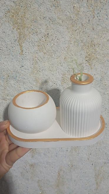 Dekorativ mini vaza və qab dəsti - Material: keramik görünüşlü