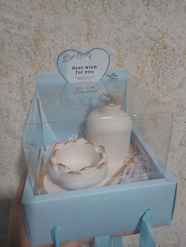 - Hədiyyəlik təqdimat: mavi qutuda şəffaf üstlü bəzəkli paketləmə və “Best wish for you” kartı daxil
