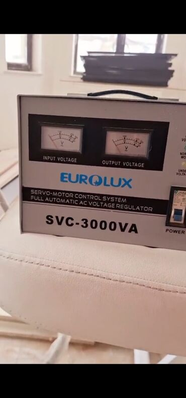 - Güc modulu: Eurolux SVC-3000VA tam avtomatik AC gərginlik tənzimləyicisi (servo-motorlu). Üzərində giriş/çıxış gərginliyini göstərən analoq göstəricilər, “POWER” açarı. 3000 VA güc sinfi – şəbəkə dalğalanmalarında cihazın stabil işləməsi üçün
