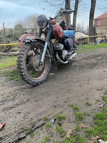 Məhsul: Sovet istehsalı köhnə motosiklet (İJ seriyasına bənzər model) Xüsusiyyətlər: - Tək silindrli benzin mühərriki - Karbüratorlu qidalanma - Mexaniki sürətlər qutusu - Zəncir ötürücü - Ön və a...