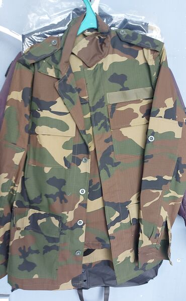 Maskalı hərbi üslubda gödəkçə - Rəng/patent: klassik woodland kamuflyaj (yaşıl, qəhvəyi, bej və qara tonlar) - Ölçü: 46 (etiketdə göstərilib) - Material: sıx toxunmuş rip-stop parça - Bağlanma: dü...