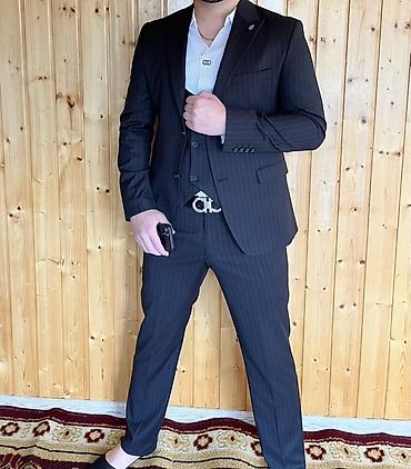 Kişi üçlük kostyum dəsti - Rəng: qara, incə şaquli zolaqlı