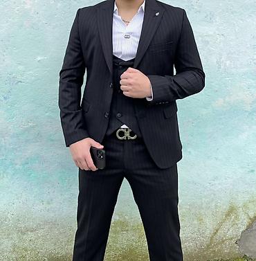- Rəng: qara, incə şaquli zolaqlı (pinstripe)