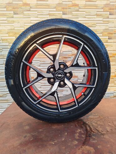 - Disk: yüngül lehimli, 5 cıvata (5 bolt) uyğunluğu, çoxşaxəli idman dizaynı; mərkəzdə Opel loqosu. Qara və gümüş tonlarda, daxili halqada qırmızı dekorativ insertlər.
