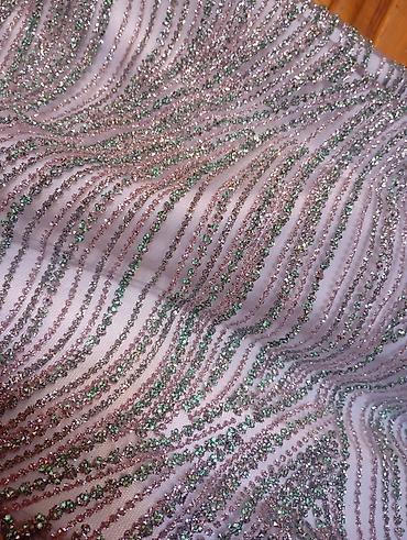 - Parça: Şəffaf tül əsas üzərində sıx yerləşdirilmiş parıltılı payet və muncuq işləmələri