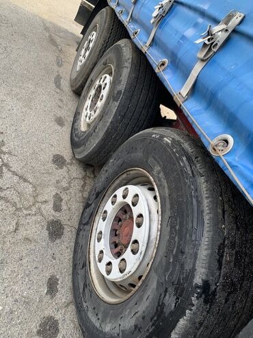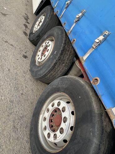 Yarasaqlı tentli yük qoşqusu (Perde/Tent yarımqoşqu) - Konstruksiya: 3 oxlu yarımqoşqu, tentli (çadır) üst örtük, arxa ikiqanadlı qapılar. - Şassi: mavi rəngli metal karkas, ön dayaqlı (krikolu) q...