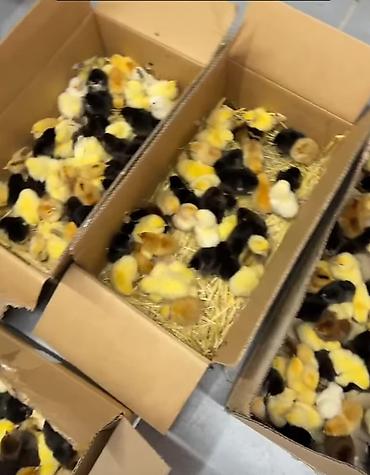 Cücələr – müxtəlif yumurta və ətlik istiqamətli qarışıq cinslər - Yeni çıxmış, aktiv və canlı balalar - Rənglər: sarı, qara, ağ və qarışıq lələklər - Qutularla paylanıb, altında saman altlıqla rah...