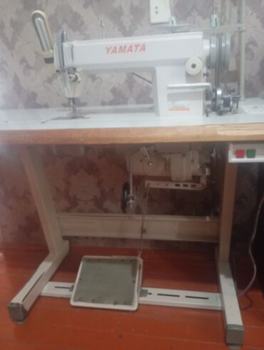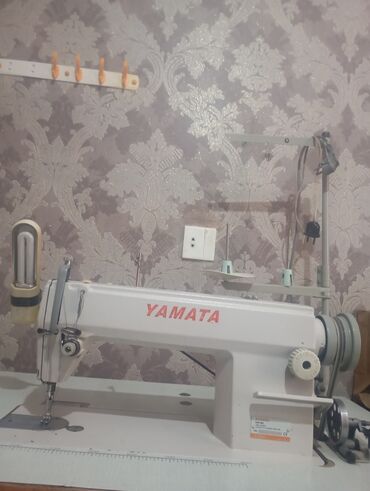 Sənaye tikiş maşını – YAMATA düz tikiş - Brend/model: YAMATA (sənaye tipli düz tikiş maşını) - Komplektasiya: metall gövdə, inteqrə iş masası və ayaq pedalı, ikili iplik dayağı (çoxlu sap çarxı üç...