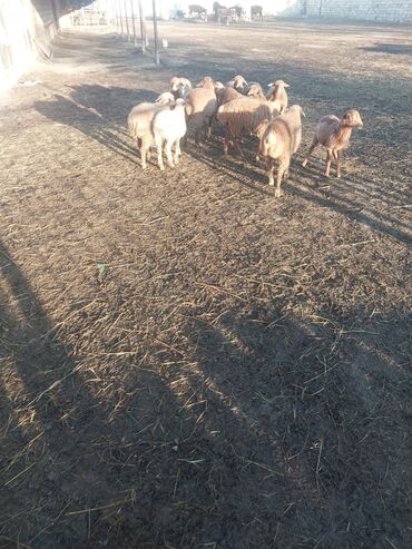 Satışda qoyun sürüsü - Növ: ətlik/yunlu yerli damazlıq tipli qoyunlar - Şəkillərdə 6–8 başdan ibarət eyni yaş qrupunda, ağ başlı, açıq-bej rəngli yunlu heyvanlar görünür - Bədən quruluşu dolğun, a...