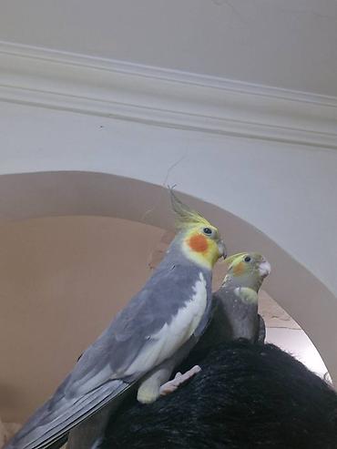 2 ədəd Korella tutuquşuları satılır. biri disi (Luna) , biri erkekdi (Arçi). Erkek danisir, mahni oxuyur. qəfəs satilmir. qiymet 70 manat