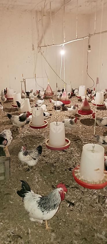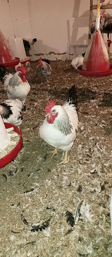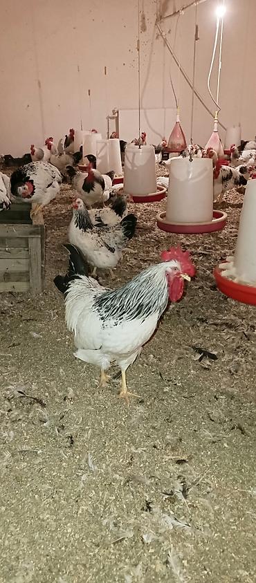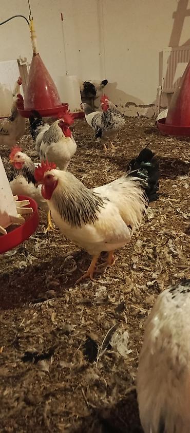 Satılır: Brama (Light Brahma) cinsli toyuqlar sürüsü - Cins: Light Brahma (ağ rəng, qara boyun və quyruq ləkələri) - Tərkib: xoruz və bir neçə yumurtlayan dişi - Xüsusiyyətlər: - Güclü bədən qur...