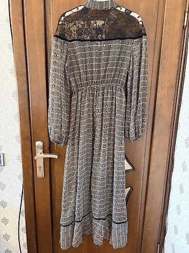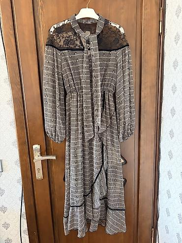 Çox zərif və zövqlü dizayna malik, boz, qara tonlarda zərif şifon materialda ziyafət və ya kokteyl tərzində paltar. 1 dəfə geyinilib, heç bir qüsuru yoxdur. İdeal vəziyyətdədir