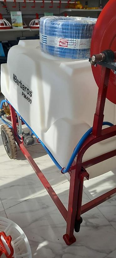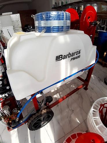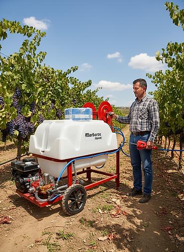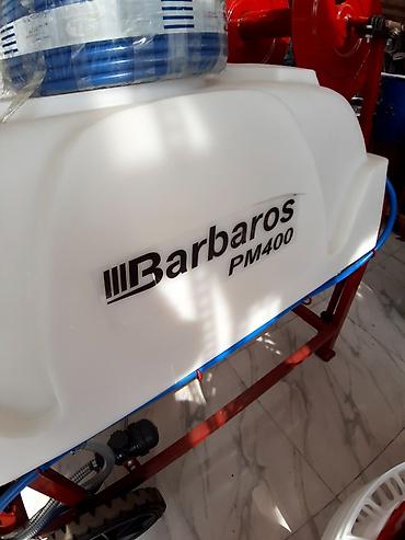 Barbaros PM400 bağ və təsərrüfat üçün motorlu çiləmə qurğusu - Su/kimyəvi məhlul çəni: 400 litr həcmli, qalın divarlı polietilen çən - Şassi: möhkəm polad karkas, toz boya örtük, daşıma və sabitlə...
