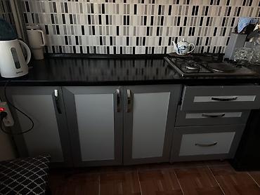 - Tezgăh: tünd (qara) rəngli davamlı səth, qaz/doman paneli və lavabonun quraşdırılması üçün uyğun.