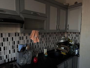 - Plitə hissəsi: qaz ocağı üçün künc zonası, yanında elektrik gözlü əlavə panel yeri görünür.