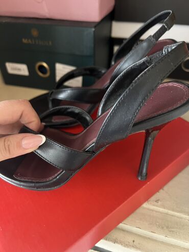 Qara rəngli qadın sandaleti – klassik və zərif dizayn - Model: nazik stilettolu, açıq burunlu sandal - Rəng: qara - Burun forması: kvadrat - Bağlama: tənzimlənən toqqa ilə incə topuq qayışı - Mate...