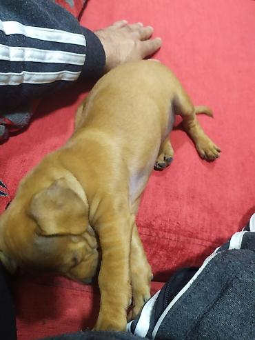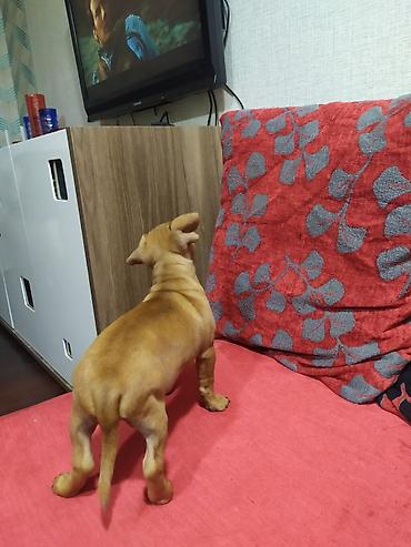 İt balası – qırmızı-qonur rəngdə, qısa tüklü, güclü sümük quruluşlu. Qısa quyruq, bərk pəncələr və enli sinə ilə atletik bədən tipi. Üzündə ifadəli qırışlar və asılan qulaqlar var. Ev şəraitinə uyğun, insanla ünsiyyəti sevən və maraqlı-xoşxasiyyət davranışlıdır; səslərə və ekranda hərəkətə reaksiya verir, oyuna meyllidir. Mebel və divan kimi səthlərdə rahat hərəkət edir, sosiallaşmaya açıqdır. Şəhər mənzilində və həyətli evdə saxlanmaya yararlı, gündəlik gəzinti və zehni stimullaşdırma tələb edən aktiv baladır. Qidalanmada keyfiyyətli puppy yemləri, təlimdə müsbət möhkəmləndirmə ilə tez öyrənir. Ailələr və aktiv sahiblər üçün sadiq yoldaş olacaq.