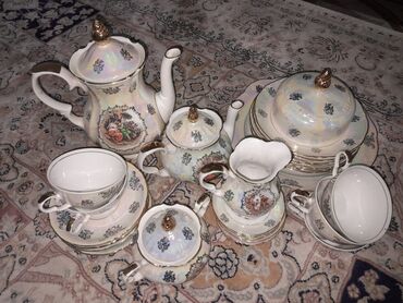 1990-cı ilin sevizi, ,6 fincan,6 nəlbəki ,1 böyük çaynik,1 süd qabı,1 qənd və ya şəkər qabı,təcilidir,çox ucuz verilir. Təzədir.40 manat