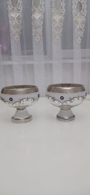 TECİLİ SATİLİR !!! Razilaşma yolu ile !!! Russiyanindi lodochkaları ve meyve qabı (ücü xrustaldı) ve Şüşe olan 3 meyve qabı.