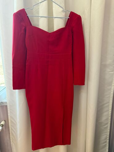 Qadin ziyafet paltari (qirmizi reng). X-lady- den 250m alinib. Seliqeli istifade olunub. 2 defe geyinilib. Olcu - 40