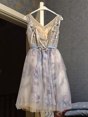 2 dəfə geyinilib. 80 manata alınıbdır 45 manata satılır - Model: A-kəsim, ətəyi fırfırlı və həcimli, dizə yaxın uzunluq - Parça: İkiqat şifon (altı astarlı hissə), yarı şəffaf uzun ballon qol - Ya...