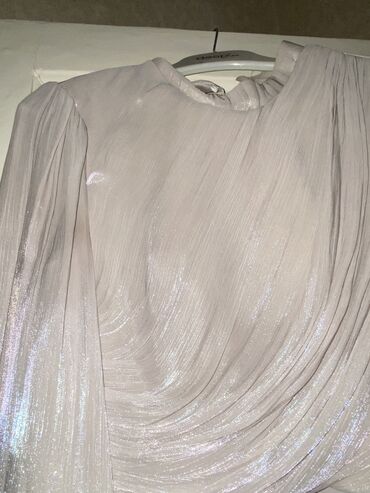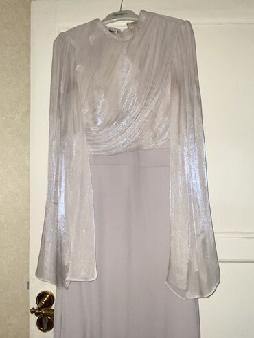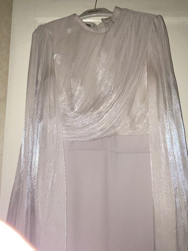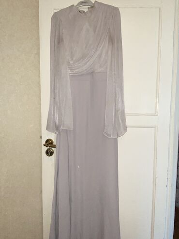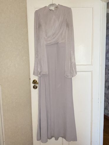 Zərif ziyafət/libas - Rəng: toz-çəhrayı (lilac tonlarında) - Model: uzun, A-kəsimli, yüngül flarlı ətək - Parça: şəffaf tül üst qat, incə romb naxışlı; altlıqla birlikdə - Yaxa: V-kəsim - Qol: 3/4...