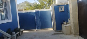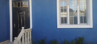 - Xarici fasad: mavi-ağ rəngli, dekorativ sütun elementləri ilə; PVC pəncərələr, dəmir giriş qapısı.